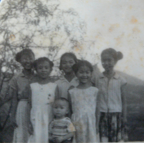 这两张黑白照片是当年小姐姐要离开连县时,与小姐妹们特意到桃林留影。