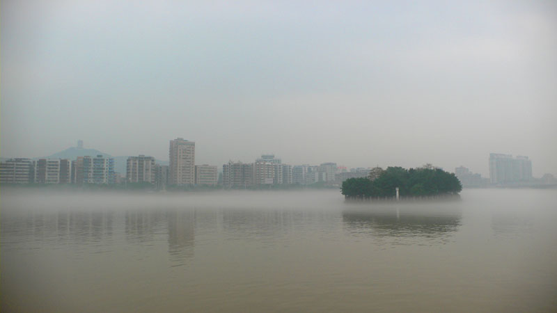 阴雨天气中温度骤升,空气与江水的温差令得江面出现了雾气迷茫的景象,下班行至武江桥面,忍不住停车拍摄。