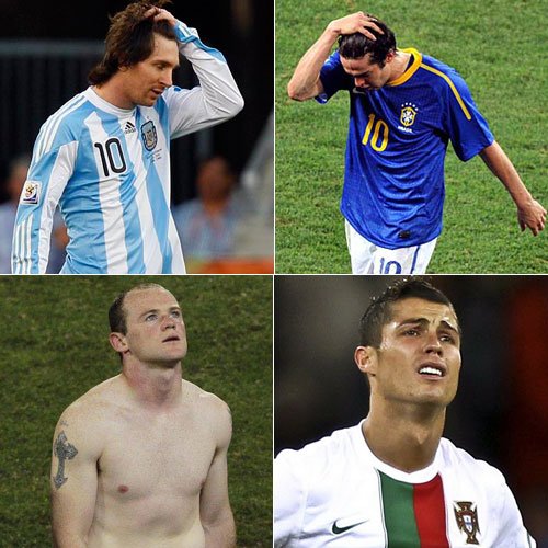世界杯看什么?从根本上讲就是看形形色色的球星,尤其是那些独当一面的巨星。在世界杯开赛前,梅西、卡卡、C罗和鲁尼被看作参加本届世界杯的“四大天王”,他们在全世界拥有无数的球迷,他们身后的阿根廷、巴西、葡萄牙和英格兰也是所有球迷公认的强队。但在世界杯决出四强球队后,我们再也看不见“四大天王”的身影,在鲁尼和C罗纷纷折戟1/8决赛后,卡卡和梅西也都倒在了1/4决赛中。